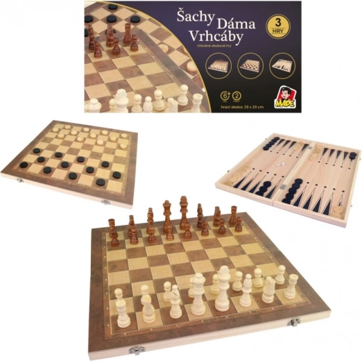 Sada MaDe Dřevěných Šachů obsahuje tři různé hry, které potěší každého šachystu a milovníka deskových her: