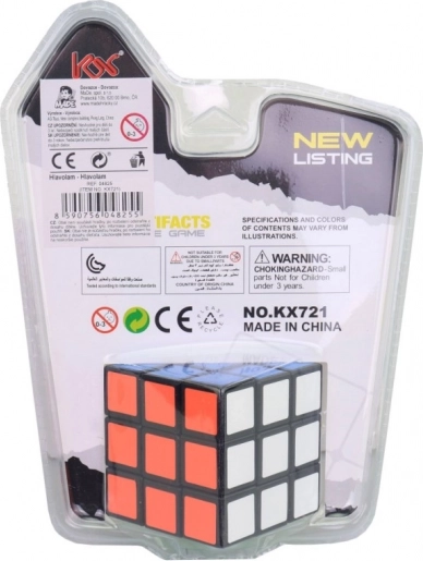 Magická kostka pro děti od 3 let, rozměry 5 x 5 x 5 cm, vyrobena z plastu, balení blister card.