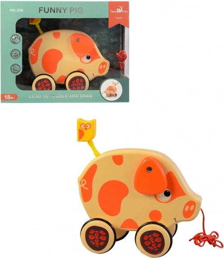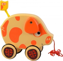Prasátko na provázku je zábavná hračka pro děti, která poskytne spoustu veselí. Stačí ho tahat za provázek a prasátko bude následovat, přičemž oživí hru veselým kýváním ocásku.