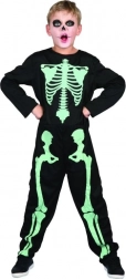 Tento karnevalový kostým pro kluky zobrazuje skeleton svítící ve tmě, ideální volba pro jakoukoli dětskou párty. Kostým zahrnuje kombinézu s prvky, které svítí ve tmě, což přidává na efektnosti a zábavě.