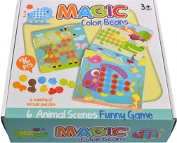 Mozaika s barevnými předlohami ideální pro kreativní děti. Obsahuje 6 různých prostředí, kde žijí zvířátka. Děti si mohou doplnit tělo zvířátek pomocí pestrobarevných kloboučků.