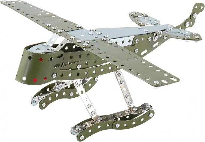 Stavebnice Malý mechanik - Letadlo, která obsahuje 242 dílků, nabízí dětem možnost rozvíjet kreativitu a manuální zručnost. Tato hračka kombinuje kovové a plastové díly, které se spojují pomocí šroubků a matiček.