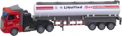 Hračka přesně napodobuje skutečný cisternový kamion s detaily, jako jsou nápisy 'Liquified Gas' a 'NO SMOKING'.