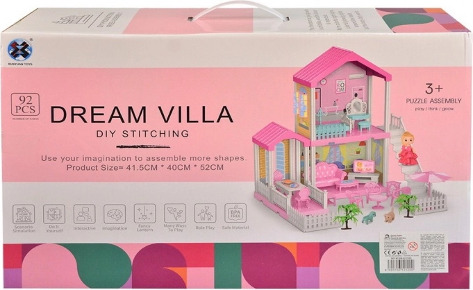 Dům s příslušenstvím pro děti od 3 let, rozvíjí fantazii a zábavu. Rozměry 52 x 41 x 40 cm, vyroben z plastu.