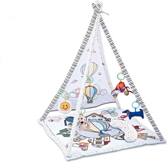 Dětská podložka se stříškou, hudbou a doplňky, ideální pro nejmenší, podporuje rozvoj smyslů a motoriku.