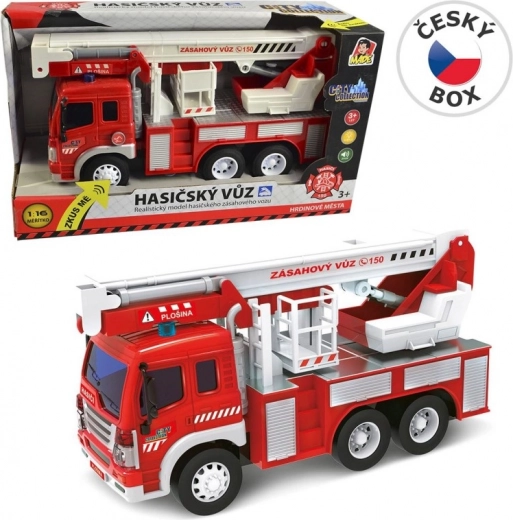 Auto Požární s Plošinou z kolekce City je skvělým doplňkem pro každého malého hrdinu. Realistický model na baterie, který svítí a vydává zvuky, přináší autentický zážitek z řízení hasičských vozidel.