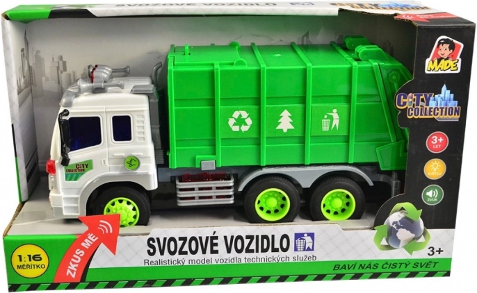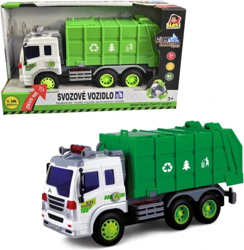 Popelářské auto MaDe City Collection s efekty, učte se recyklační symboly.