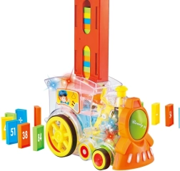 Tato originální transparentní lokomotiva je skvělým způsobem, jak zabavit děti. Lokomotiva skládá domino kostky s pravidelnými mezerami, což poskytuje jedinečný vizuální zážitek. Hračka hraje melodie, které ještě více umocňují zábavu.