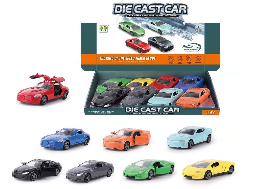 Kovové sportovní auto s otevíracími dveřmi je ideální hračka pro malé závodníky. S rozměry 16 x 7 x 4 cm nabízí realistický zážitek a odolnou kovovou konstrukci.