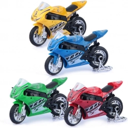 Kovová závodní motorka o velikosti 11 cm je skvělou hračkou pro malé závodníky ve věku 3 a více let. Vyrobena z kvalitního plastu, zaručuje dlouhou životnost a bezpečnost při hře.