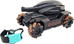 Navíc díky druhému pohybovému ovladači, který můžete připevnit na ruku, a po spárování s tankem, máte možnost tank ovládat pomocí pohybu vaší ruky. Ovladač nabízí tři druhy pohybu do stran, díky čemuž se tank stává dokonale ovladatelným i v těch nejnáročnějších situacích. Vydejte se do akce s tankem, který má rozměry 28 x 16 x 16 cm a je vyroben z odolného plastu, takže je ideální i pro venkovní hraní.