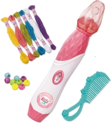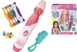 Tato sada korálků pro zdobení vlasů zahrnuje vše, co vaše dítě potřebuje k vytvoření originálních účesů. Použití je jednoduché – bavlnky se připevní na vlasy a pomocí diamantového tlačítka se pramínek vlasů stočí. Poté jednoduše zajistěte konec pramínku korálkem a nový účes je hotov.