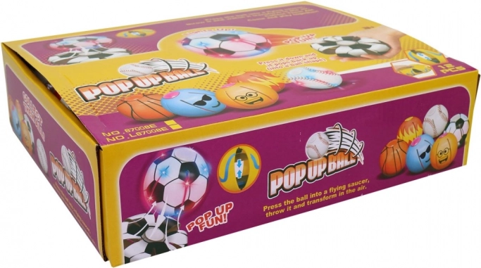 Blikající míček pro děti od 3 let z plastu, 8,5 cm. Dodáván v boxu se 12 ks. Baterie nejsou součástí.