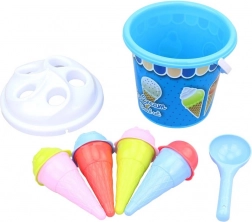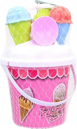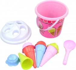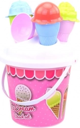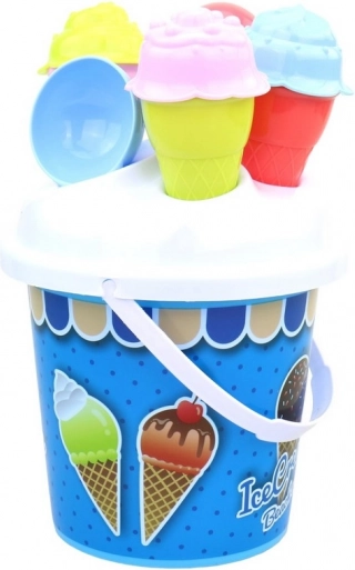 Součástí setu je kbelík s rukojetí pro snadnou manipulaci a přenos na pláži či pískovišti. Kbelík je ozdoben efektními grafikami zmrzliny.
