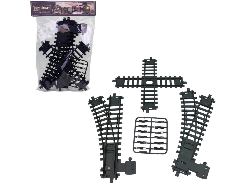Rozšiřte své železniční dobrodružství s touto sadou kolejí! Balení zahrnuje: