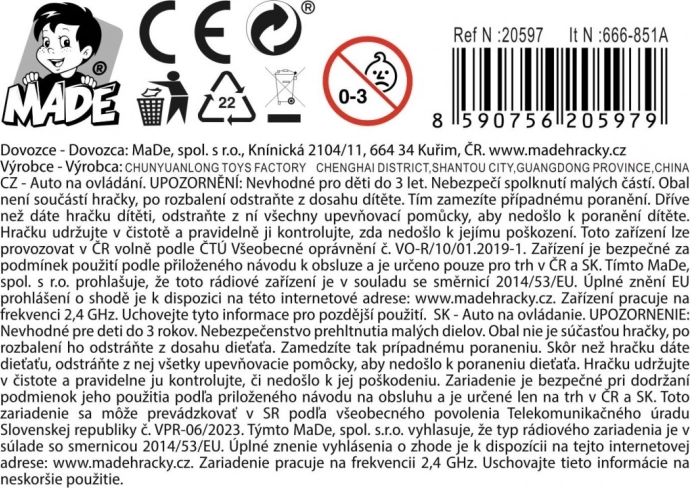 - Obsahuje baterie pouze pro hračku