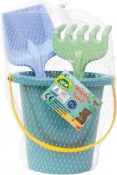 - Kompletní výbava: kyblík, lopatka, hrabičky a 3 formičky