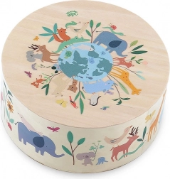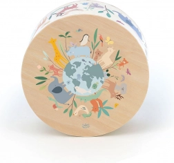 Vilac Dřevěný Cajón Zvířata světa je nádherně ilustrovaný hudební nástroj pro děti, který podporuje rozvoj jemné motoriky, koordinace a sluchového vnímání. Tento inspirativní cajón vnáší do dětského světa lásku k hudbě a přirozeně je povzbuzuje k objevování rytmů.