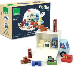 Dřevěná logická hra Nalož to správně od společnosti Vilac představuje inteligentní výzvu pro děti, které rády řeší, jak správně uložit nábytek do stěhovacího vozu. Tato hra inspirovaná ilustrovanými návrhy Ingelou P. Arrhenius pomáhá rozvíjet logické myšlení, prostorovou orientaci a jemnou motoriku. Děti mají k dispozici 19 kusů nábytku, který musí složit do vozu.