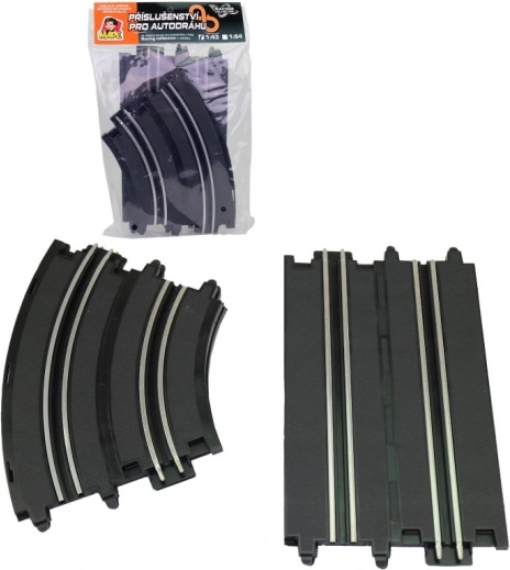 Náhradní díly pro autodráhu Racing collection v měřítku 1:43. Balení obsahuje čtyři kusy dráhy z kvalitního plastu, ideální pro doplnění vaší autodráhy a zvýšení zábavy při hře.