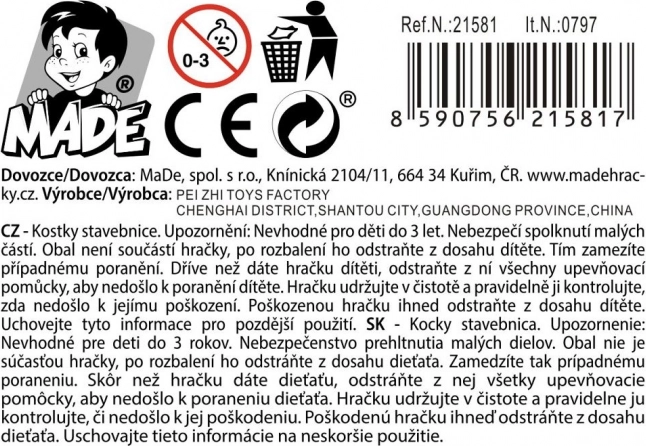 - Kostky mají ideální rozměry 14,5 x 4 x 9,5 cm, což je perfektní velikost pro malé ruce.