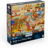 Puzzle Býci v obchodě s porcelánem od House of Puzzles nabízí jedinečné a nepravidelné tvary dílků, které zvyšují zajímavost a výzvu při skládání.