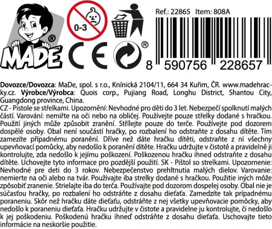 Představujeme vám skvělou hračku pro děti od 3 let - pistoli se střelkami. Tato pistole je skvělou volbou pro rozvoj zručností, nabízí spoustu zábavy bez nutnosti baterií. Je vyrobena z odolného plastu, který zaručuje dlouhou životnost a bezpečnost při hře. Pistole je dodávána v atraktivním balení typu window box, což ji činí ideálním dárkem.
