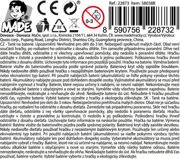 Zábavný tank na baterie pro kluky, odolný a dodávaný s bateriemi. Ideální hračka pro malé vojáky.