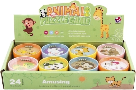 Zábavný dětský hlavolam s motivy zvířat, který rozvíjí jemnou motoriku a soustředění. Každý hlavolam má za úkol umístit kuličky do správných jamek.