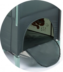 Balení obsahuje skládací postýlku, matraci, druhou vrstvu a tašku na přenášení a skladování. Výrobek je v souladu s evropskou normou EN716-1, což zajišťuje nejvyšší standard bezpečí a kvality.