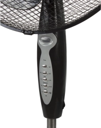 Tento ventilátor nabízí moderní a elegantní design se stabilní čtyřramennou základnou opatřenou gumovými nohami pro bezpečnou stabilitu. Díky bezstupňovému nastavení výšky můžete přizpůsobit ventilátor vašim potřebám až do výšky 125 cm.