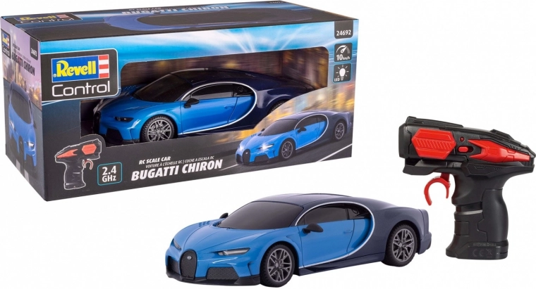 Bugatti Chiron, pojmenované po legendárním závodním jezdci Louisu Chironovi, je mistrovským dílem inženýrství, které představuje dokonalost a výkon. Díky maximální rychlosti 420 km/h a ceně několika milionů eur je Bugatti Chiron symbolem luxusu a rychlosti. Revell Control RC Bugatti Chiron přináší tento zážitek přímo do vašeho domova v menší, dostupnější formě.