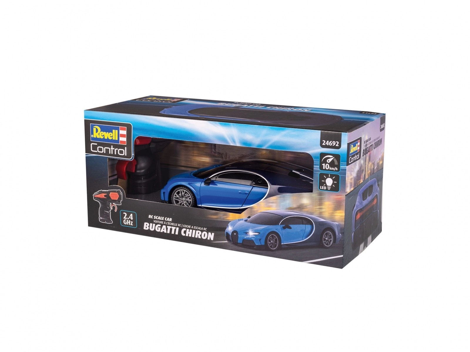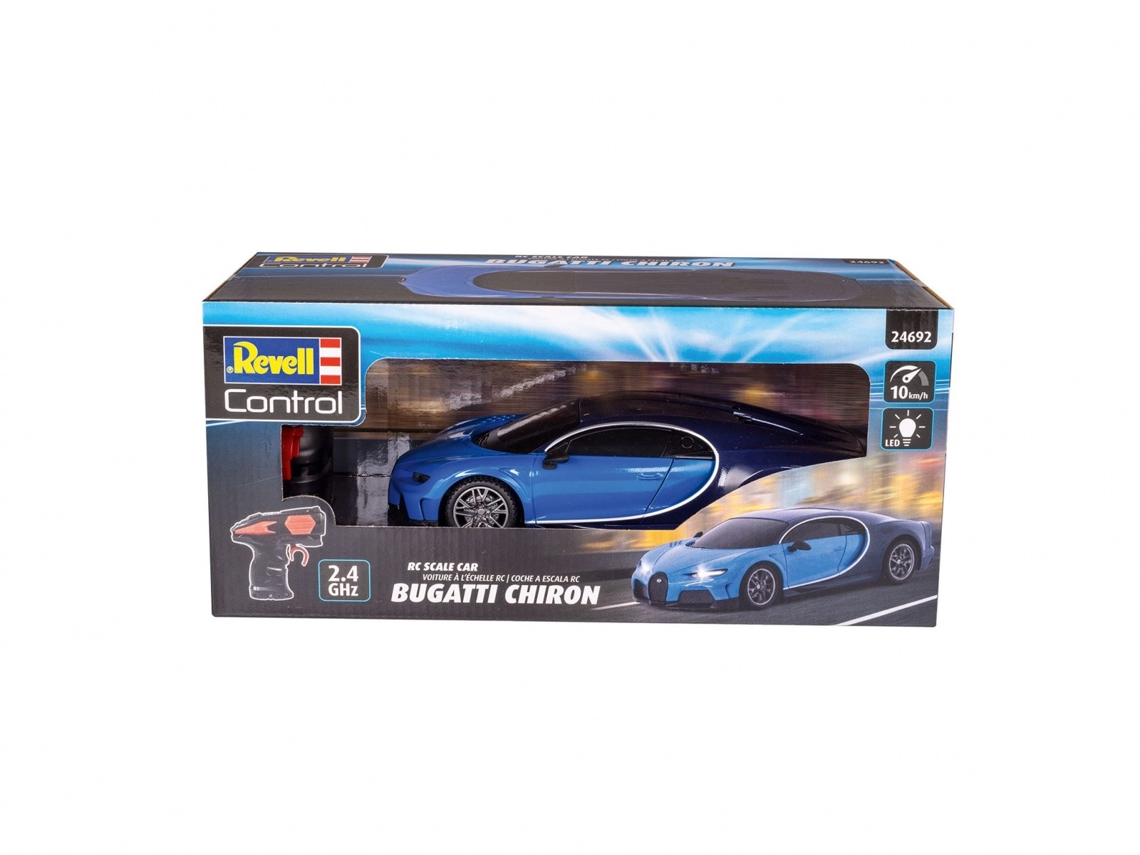 Užijte si mimořádný zážitek s Revell Control RC Bugatti Chiron. Tento model je vhodný pro děti od 8 let a nabízí zábavu pro každého, kdo se zajímá o RC modely. S rychlostí až 10 km/h a přesným dálkovým ovládáním 2,4 GHz, které je vhodné pro leváky i praváky, zajišťuje optimální zážitek z jízdy.