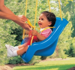 Houpací křeslo obsahuje speciální bezpečnostní opatření, která dětem zajišťují klidný a bezstarostný čas. Jeho design s místem na nohy a stabilní konstrukcí ze dvou lan z něj činí jednu z nejbezpečnějších možností na trhu. Vysoké opěradlo chrání děti před nakláněním dozadu, zatímco přední lišta zabraňuje vypadnutí. Přiložený pás s přezkou poskytuje maximální bezpečnost a možnost odebrání přední lišty a pásu je ideální pro starší děti. Sada obsahuje také žlutá lana pro zavěšení houpačky.