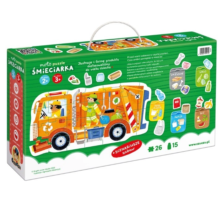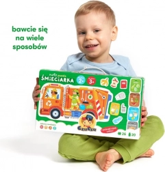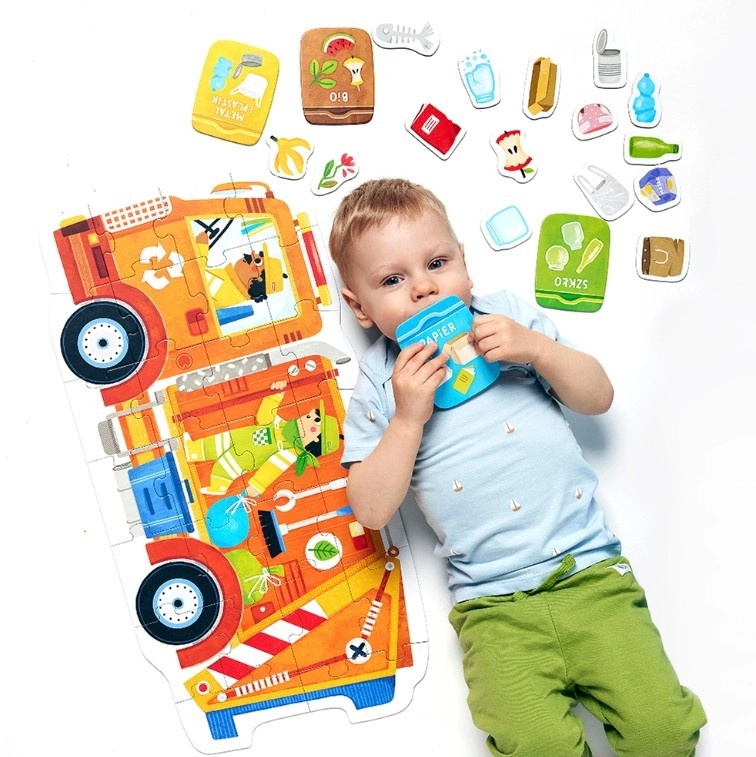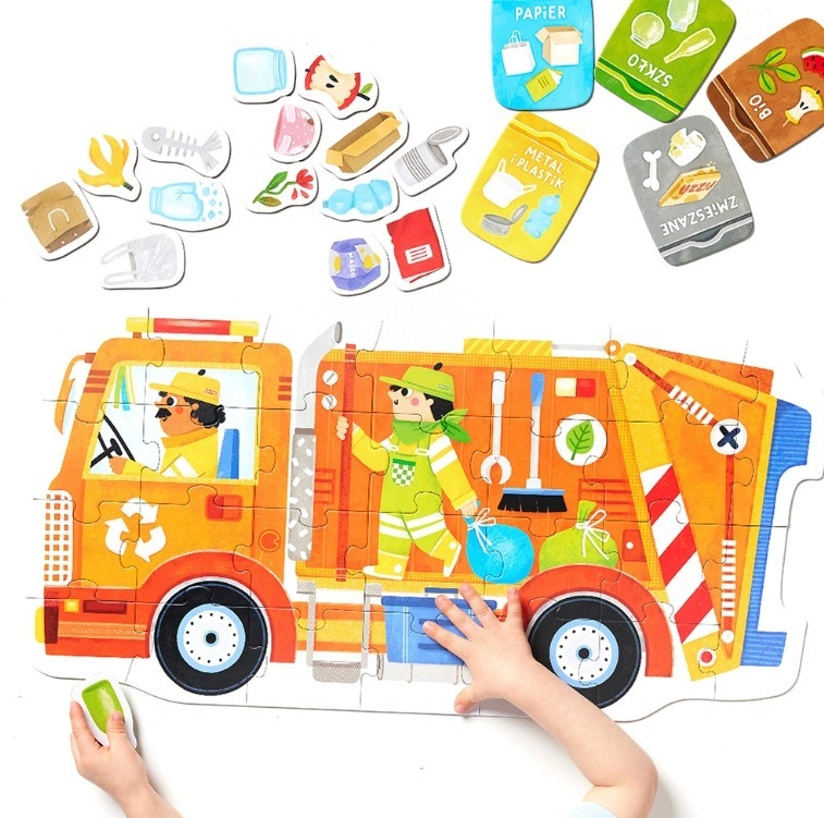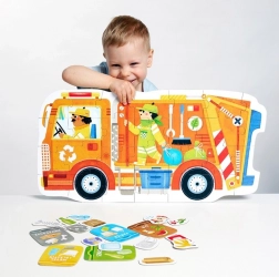 Puzzle Moto - Popelářské auto je jedinečný vzdělávací set pro zvídavé objevitele. Užívejte si kreativní hry a zábavnou výuku principů třídění odpadu a ekologie s tímto skvělým dárkovým setem.