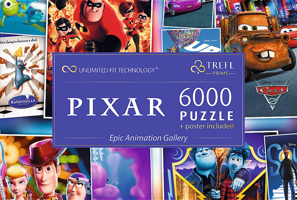 Objevte kouzlo světa Disney Pixar s puzzle kompozicí o 6000 dílcích, které lze díky technologii TREFL Unlimited Fit (UFT) skládat dle libosti nebo podle předlohy, čímž vznikne unikátní obraz.