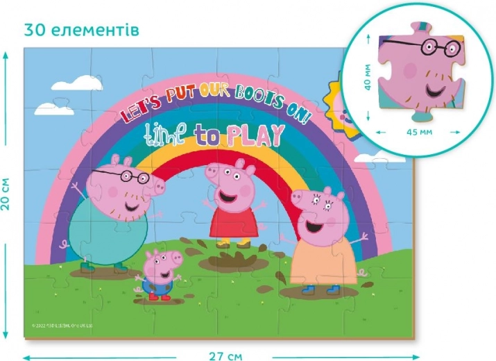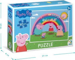 Užijte si zábavné chvíle s puzzle Prasátko Peppa: Duha o počtu 30 dílků. Skvěle se hodí pro děti, které milují barevné obrázky a výzvy při skládání.