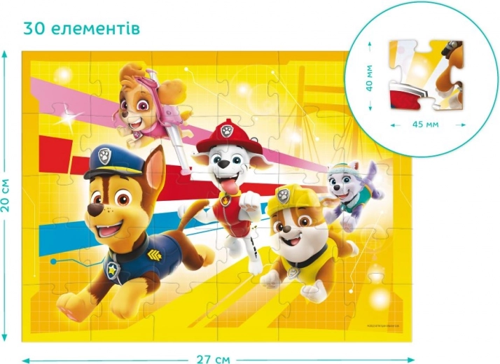 Zábavné puzzle Tlapková Patrola pro děti, 30 dílků, rozměr 27x20 cm. Ideální pro rozvoj kreativity a motoriky.