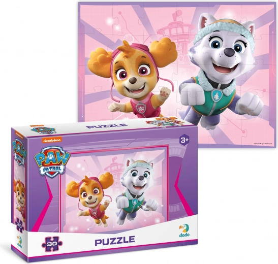 Puzzle DODO s motivem Tlapková Patrola: Sky a Everest – 30 dílků, rozměry po složení 27x20 cm. Ideální zábava pro děti.