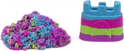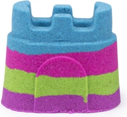 Varianta Mini Duhový zámek obsahuje 140 g písku ve čtyřech barvách (modrá, zelená, fialová, růžová). Kelímek ve tvaru zámku poslouží jako forma pro stavění i jako praktické úložiště – po hraní písek jednoduše uložíte dovnitř a je připravený na další tvoření.