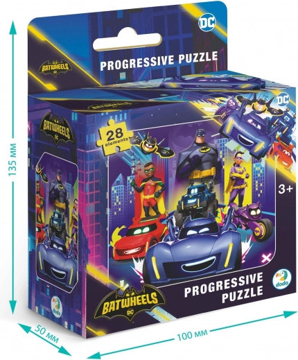Toto roztomilé DODO Puzzle Batwheels nabízí 28 dílků, které zábavně prověří schopnosti skládání vašeho dítěte. Skvěle se hodí k rozvíjení motorických dovedností a kreativity.