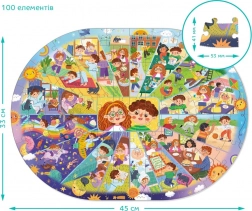 Kvalitní puzzle s 100 dílky, které zachycuje vaše každodenní rutiny, je ideální pro jakékoli věkové kategorie. Užijte si zábavu a relaxaci s tímto vzdělávacím a zábavným puzzle.