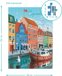 Ponořte se do krásy Kodaně s tímto působivým puzzle o 250 dílcích. Ideální pro milovníky puzzle všech věkových kategorií.