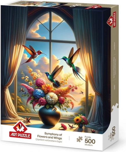 Puzzle Symfonie křídel a květin, 500 dílků, nádherný motiv přírody, ideální pro všechny věkové kategorie.