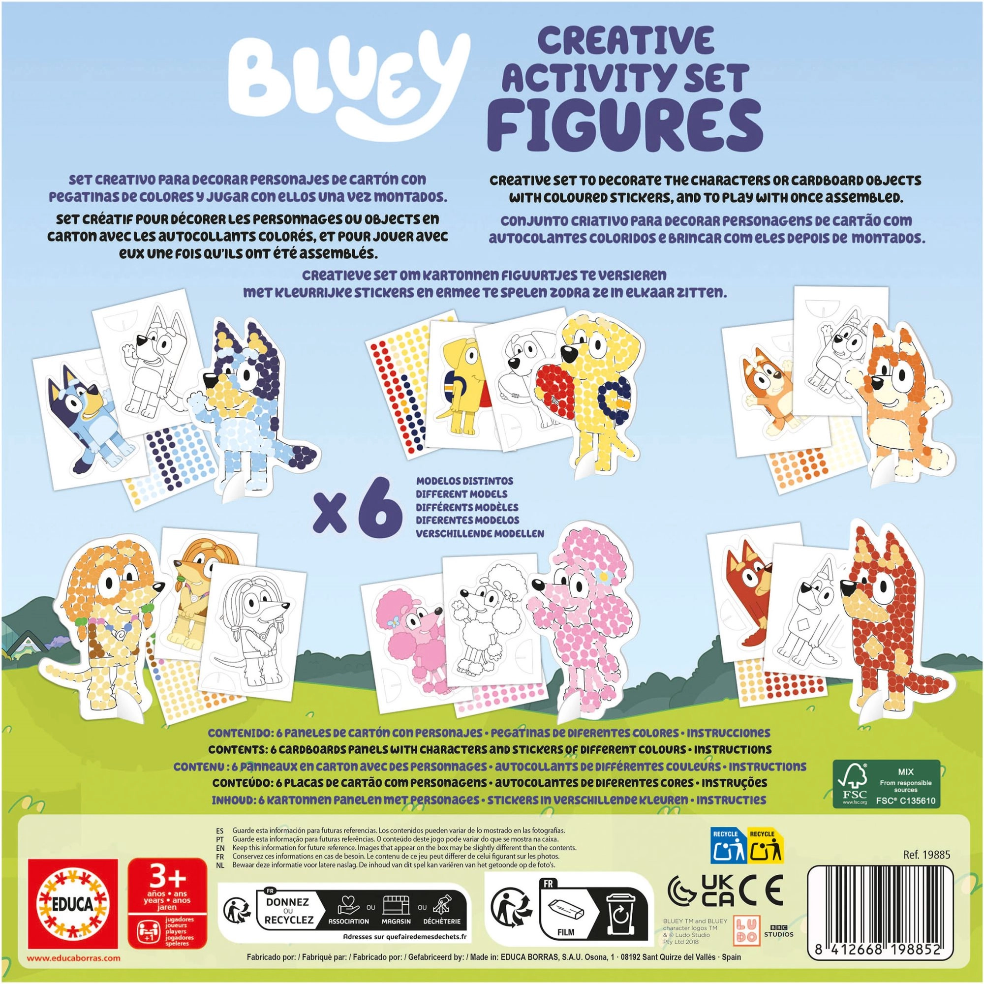 Kreativní sada pro děti zahrnující zdobení postaviček nebo předmětů z kartonu pomocí barevných samolepek. Skvělá zábava pro děti, jakmile jsou postavičky sestaveny do 3D podoby.