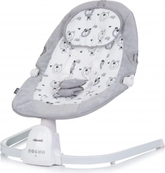 Lehátko se vyznačuje 5 rychlostmi houpání, časovačem s možností nastavení na 8, 15 a 30 minut a různými melodiemi. Ovládání je možné pomocí dálkového ovladače, což usnadňuje použití zejména při péči o kojence. Váše dítě bude vždy v bezpečí díky integrovanému bezpečnostnímu pásu. K zábavě přispívá stříška s měkkými plyšovými hračkami a moskytiéra chrání před hmyzem.