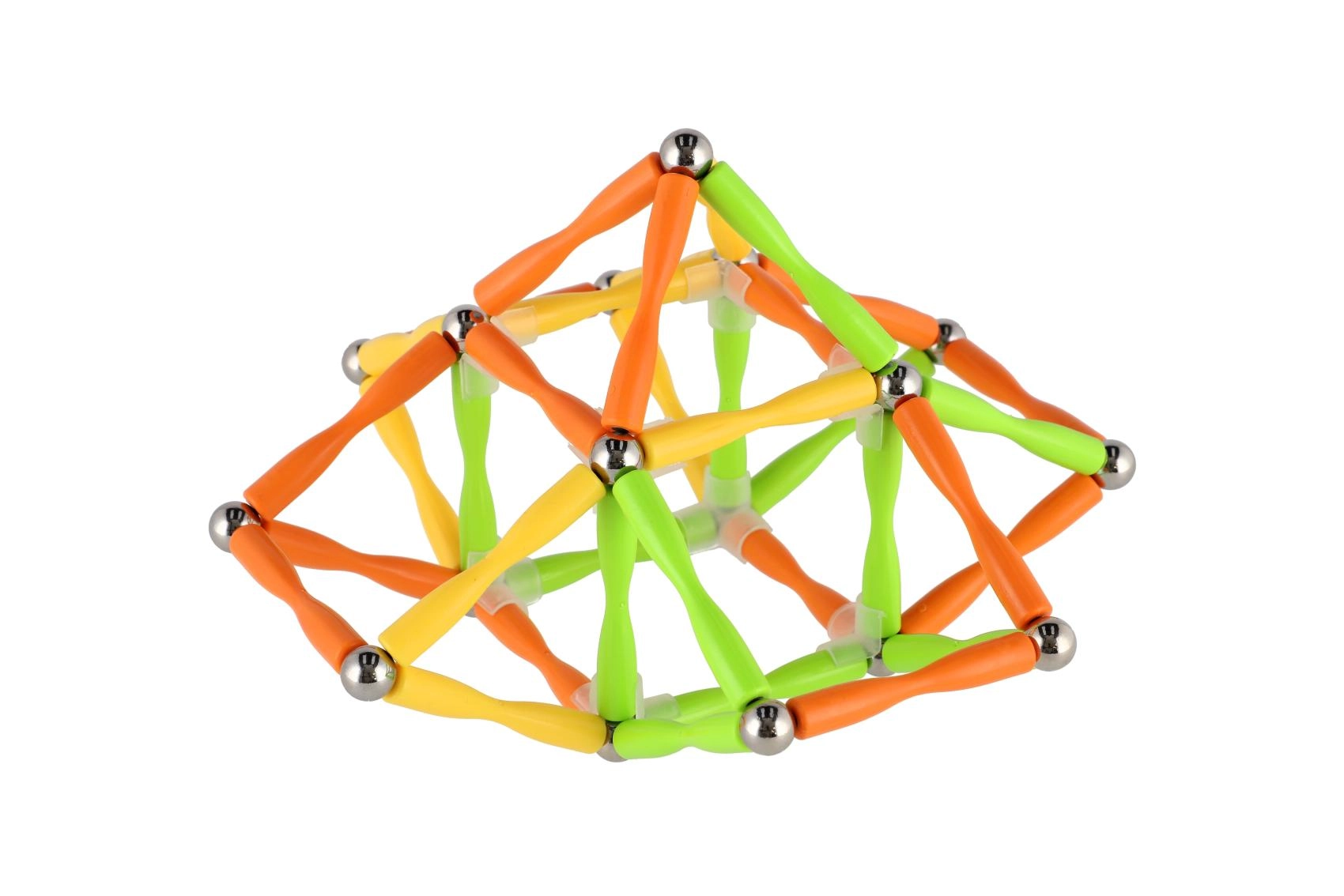 Silné magnety v plastových tyčinkách a kovové kuličky umožňují vytvářet pevné a vysoké konstrukce – od věží po mosty.