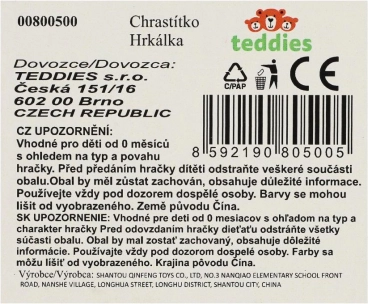 Ideální pro podporu senzomotorických dovedností vašeho miminka. Toto chrastítko a kousátko je lehké a bezpečné, perfektní pro nejmenší děti. Díky kombinaci pevného plastu a měkkého silikonu pomáhá jemně masírovat dásně během prořezávání zoubků, což může zmírnit diskomfort dítěte. Chrastící zvuk stimuluje sluch a zaujme pozornost vašeho dítěte.