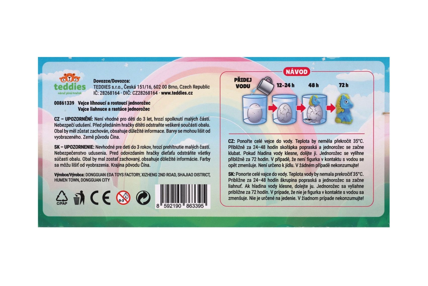 Objevte kouzlo s vajíčkem, ze kterého se vylíhne a postupně zvětší roztomilý jednorožec. Stačí přidat vodu a sledovat magickou proměnu. Jednoduché použití, překvapení a zábava pro děti, podpora trpělivosti a zvědavosti a bezpečné provedení z něj dělají skvělý dárek.