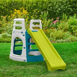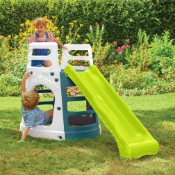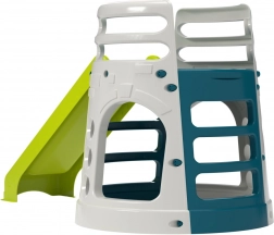 Tato dětská skluzavka s prolézačkou je ideální pro děti, které si chtějí užívat pohyb a dobrodružství jak venku, tak uvnitř. Nabízí kombinaci skluzavky, lezecké stěny, žebříku a skrýše v podobě domu.